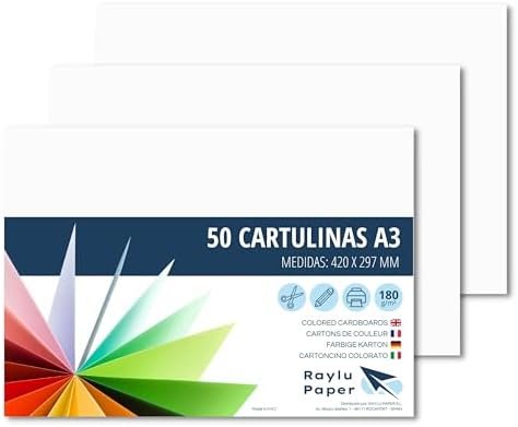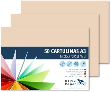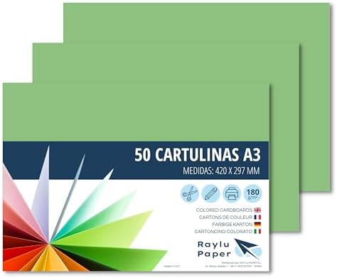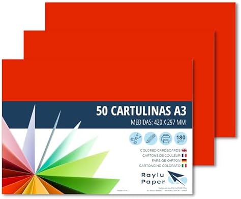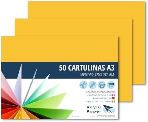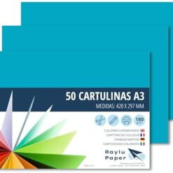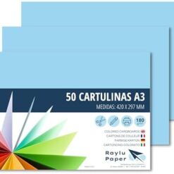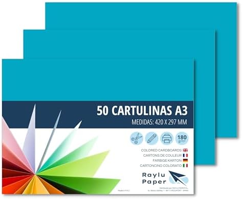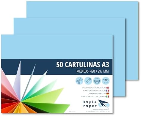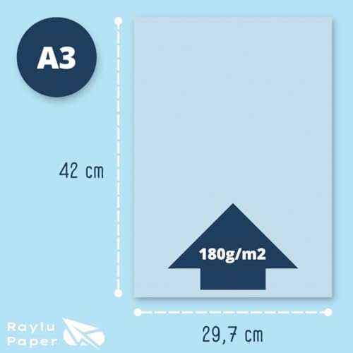 RAYLU PAPER – Papier coloré A3, 50 Feuilles Papier Cartonné 180g/m², 297 x 420 mm, cartons professionnels de couleurs pour bureau, l’artisanat (Bleu Ciel)