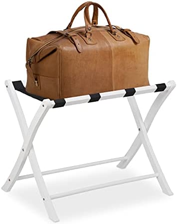 Relaxdays Porte-Bagages Pliable en Bois – pour Bagages – 52,5 x 66,5 x 48 cm – Blanc