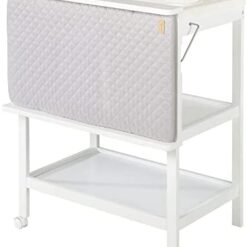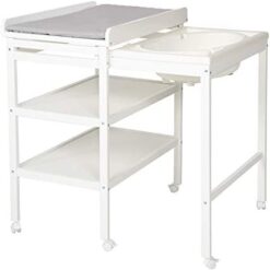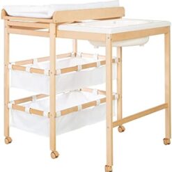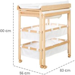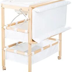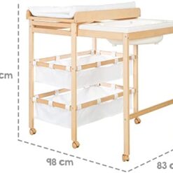 roba Table à Langer avec Baignoire Coulissante Baby Pool 2EN1 avec Matelas Imperméable Blanc et 2 Compartiments de Rangement – Bain Bébé Dès la Naissance – Bois Naturel