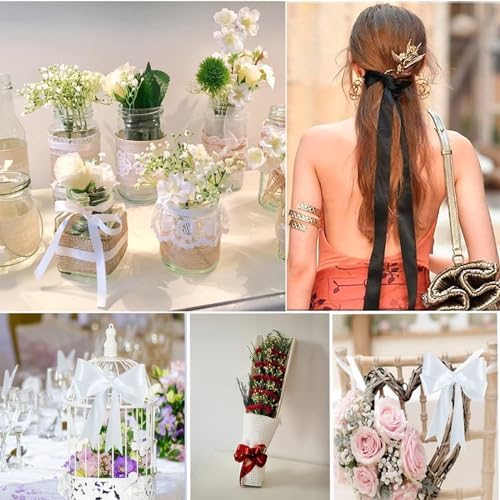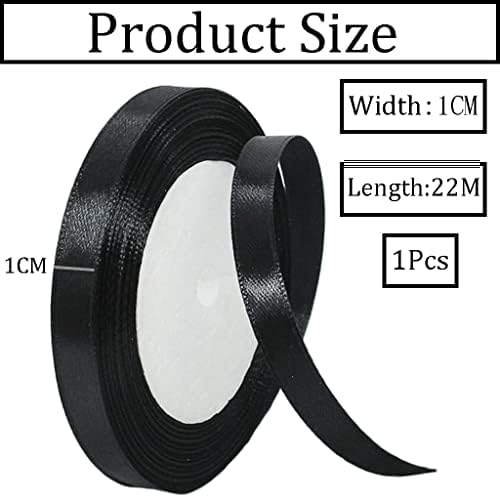Ruban Satin Noir Fin 10mm,22m Polyester Ruban Satin,Ruban Cadeau Emballage,Ruban Noel Ruban Tissu pour Ballon,Couture,Nœuds,Artisanat,Bouquet,Décoration de Mariage,Voitures,Anniversaire,Gâteau