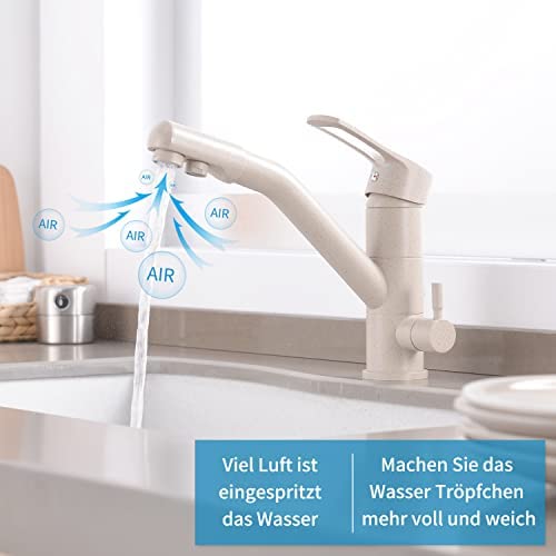 Sagetta Robinet d’eau potable 3 voies en acier inoxydable pour filtre à eau Robinet de cuisine 3 en 1 Chromé Robinet d’eau potable avec 2 leviers (beige)