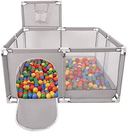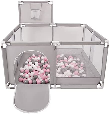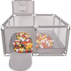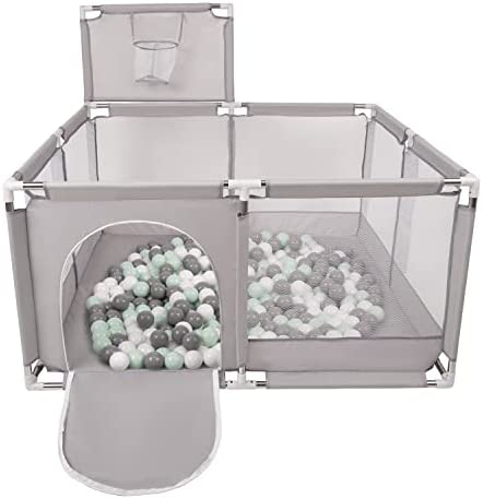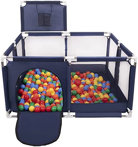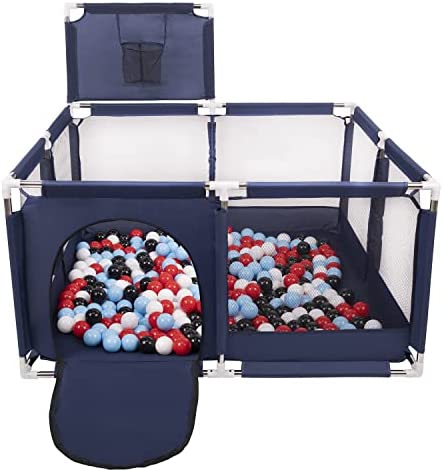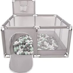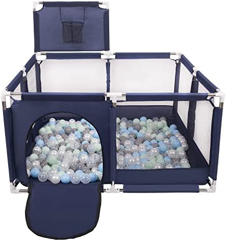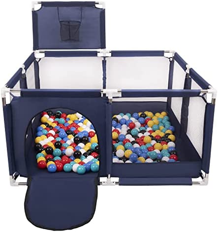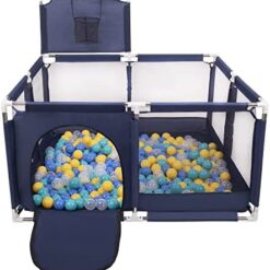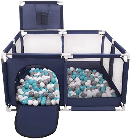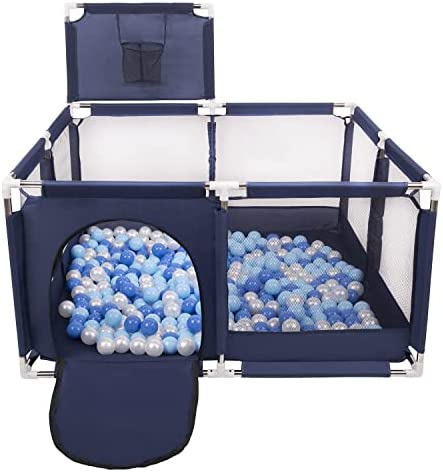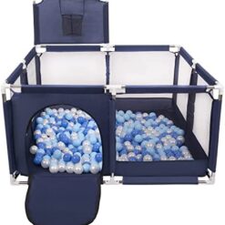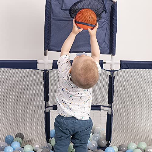 Selonis Parc Bébé Avec 200 Balles Plastiques Aire De Jeu Pliable Basket, Bleu:Bleu/Babyblue/Perle