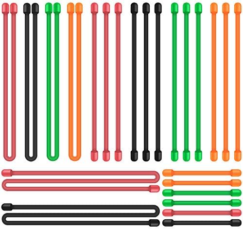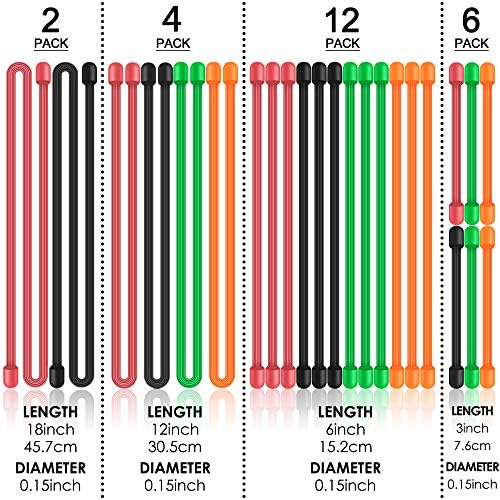 senhai Lot de 24 Attaches de Câbles, 18″ 12″ 3″ & 6″ Lien Bandes en Silicone pour Rangement de Câbles Attacher – Noir, Vert, Orange, Rouge