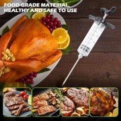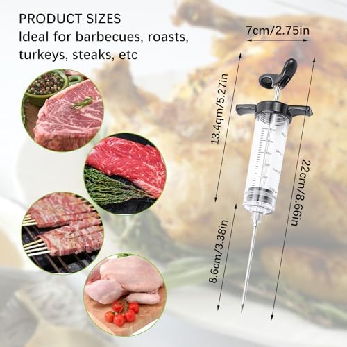 Seringue à Sauce, Injecteur de Marinade, Seringue Alimentaire Cuisine, Seringue à épices avec L’aiguille La Capacité de 30ml, pour Badigeonner et Cuisiner Dinde, Bœuf, Porc, Poisson, Barbecue