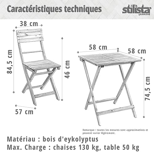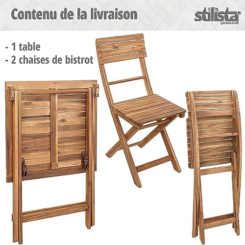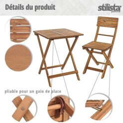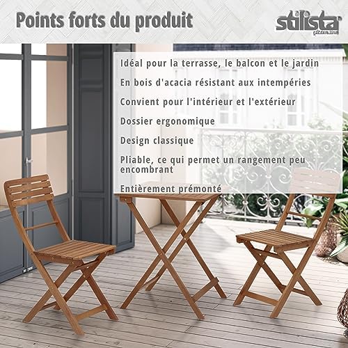 Stilista Set Bistro 3 pièces en Bois d’acacia certifié FSC® Pliable