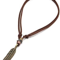 Style Rétro, Plume Pendentif Collier Homme Femme – avec Cordon en Cuir Réglable