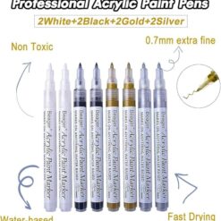 Stylo acrylique noir blanc or argent, Marqueur permanent de 0,7 mm étanche Stylo peinture rupestre, pour roche céramique bois métal papier verre tissu plastique cuir Bricolage 8 pièces