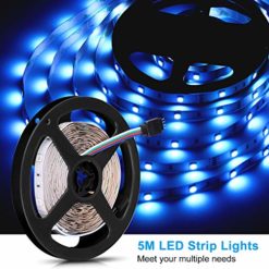- Haute Qualité: Ruban LED de longueur 5m, 5050 RGB de la nouvelle génération. Ruban LED peut être contrôlé flexiblement dans le cadre de 7M.