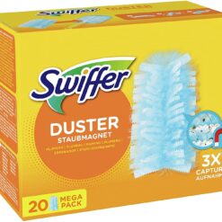 Dites adieu à la poussière, à la saleté et aux cheveux. Les plumeaux Swiffer Duster sont l’outil idéal pour attirer et retenir la poussière, les poils et les allergènes des acariens, des chats et des chiens des surfaces gr ce à leurs milliers de fibres attrape-poussière dotées d’un léger revêtement. Les lingettes dépoussiérantes Swiffer disposent de fibres uniques capables d’adapter leur forme pour pouvoir atteindre tous les coins et recoins et vous débarrasser de la poussière et des poils sur toutes les surfaces sans les disperser dans votre intérieur. Bon à savoir : elles conviennent en particulier pour récupérer les poils des animaux de compagnie, qui en perdent tout le temps, ou si vous êtes allergique à la poussière. Il est tellement efficace que vous pourriez même commencer à aimer enlever la poussière. Utilisez les recharges pour plumeau Swiffer Duster avec le manche Swiffer Duster.