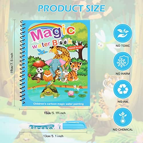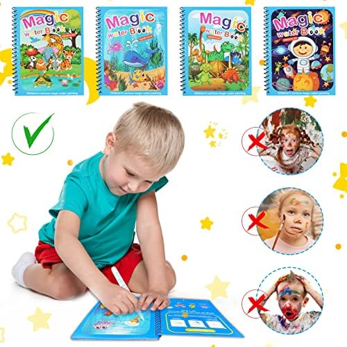 talifoca Lot de 4 Livre de Coloriage a L’Eau, pour Enfants,Livre Magique avec Stylo à l’eau, Réutilisable Magic Water Book pour Enfants, garçons, Filles, pour Tout-Petits, Cadeau de Noël