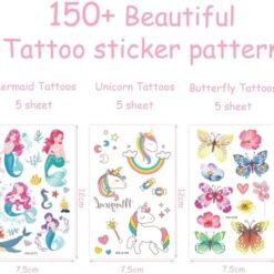 Soyez le premier à laisser votre avis sur “Tatouage Fille Paillettes, 150+ Paillette Tatouage Licorne + Sirène + Papillon, Etanche, Ephémères, Anniversaire d’enfant Cadeau”