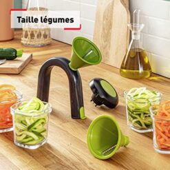 Tefal Ingenio Spiralizer Taille légumes, Découpe légumes, 2 tailles de découpe spaghetti et tagliatelle, Poussoir, Accessoire de nettoyage K2298014, Vert/Noir