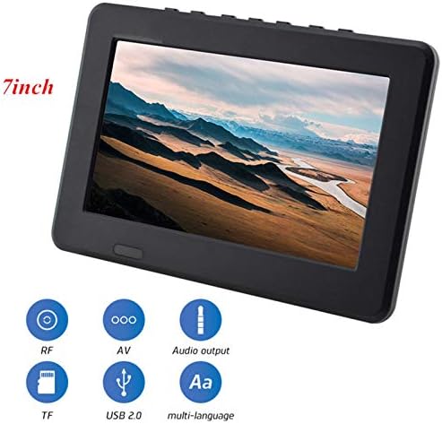 Télévision Numérique Portable 7 Pouces, TV Analogique Numérique T/ T2 LED TFT Couleur Haute Résolution Portable TV-Support USB,Carte TF,PVR,Vidéo 1080P RMVB/AVI/MPEG/MKV/MOV,Musique MP3