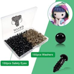 TOAOB 150pcs Yeux de Sécurité amigurumis 6mm Yeux de Poupée en Peluche en Plastique Rond Noir avec Rondelles pour Marionnette DIY Artisanat Bijoux