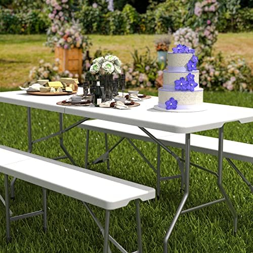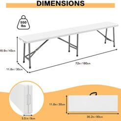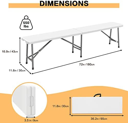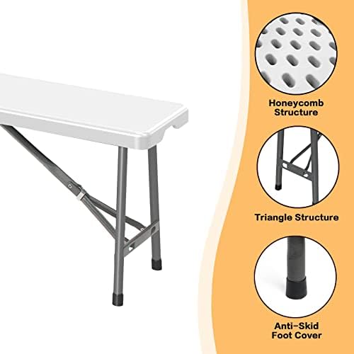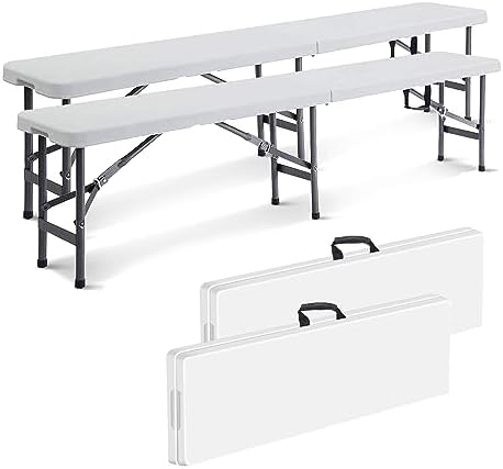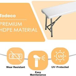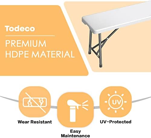 Todeco Banc Pliant Camping, Banc en Plastique de Jardin, 2 Pièces Banc Exterieur Plastique pour Fête Barbecue Pique-Nique, 2 à 4 Personnes par Banc, Pliable en Deux, 183 x 30 x 43 cm