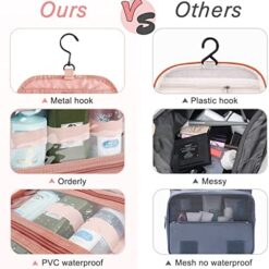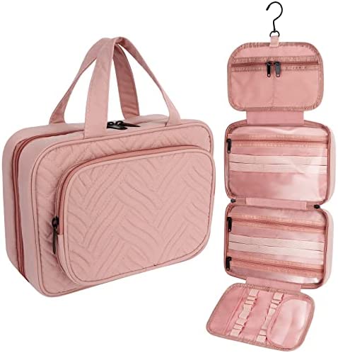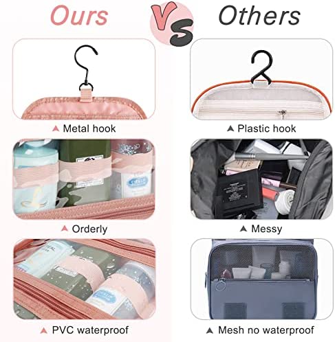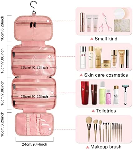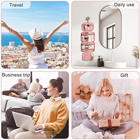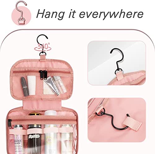 Trousses de Toilette, Trousses de Maquillage de Voyage, Trousses de Maquillage, Trousse de Toilette Pliable, Ensemble de Rangement de Douche à Suspendre Rose pour Salle de Bain, Voyage (Rose)