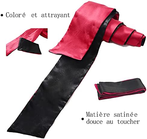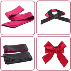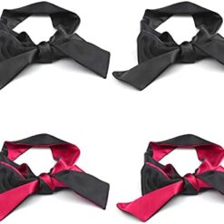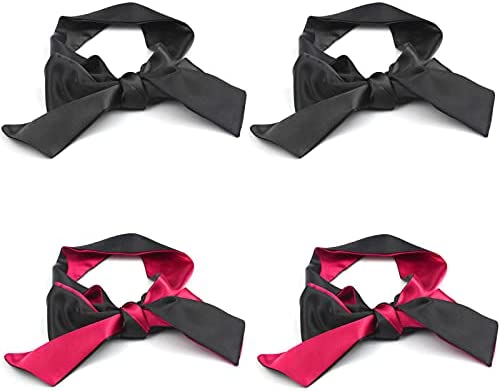 VEGCOO Bandeau Yeux, 4 Pièces Masque Satin Bandeau sur les Yeux Sommeil, Bandage Yeux/Bandeaux Yeux Masque De Sommeil pour Adulte, Couples Amoureux 150 cm/Noir Rouge et Noir (4 Pièces)
