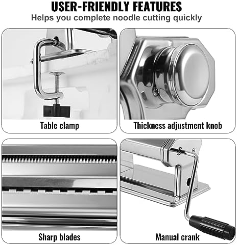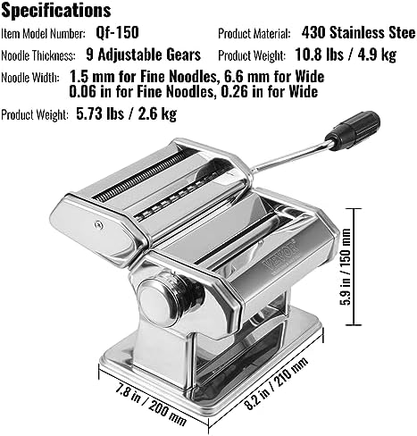 Soyez le premier à laisser votre avis sur “VEVOR Machine à Pâtes Manuelle Acier Inox Machine à Pâtes Fraîches Italiennes 9 Épaisseurs 0,3-3 mm Largeur 1,5/6,6 mm Brosse et Manivelle Incluse pour Spaghettis Emballages de Boulettes et de Ravioli”