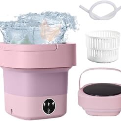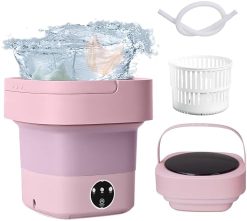 Vinteky Mini Machine à Laver, 6,5L Machine a laver portable, 3 Modes de Nettoyage, avec Stérilisation à La Lumière Bleue, lave-linge de voyage, de camping, Pour Appartement,Camping, Voyage, RV (Rose)