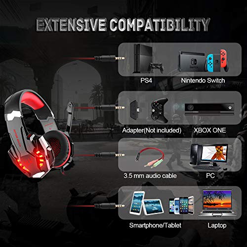 quantité de Willnorn Casque de jeu stéréo avec micro pour PS4, Xbox One, PC, Nintendo Switch, Mac/réduction du bruit avec microphone et contrôle du volume, jack 3,5 mm, lumières LED, basses G9000 Red