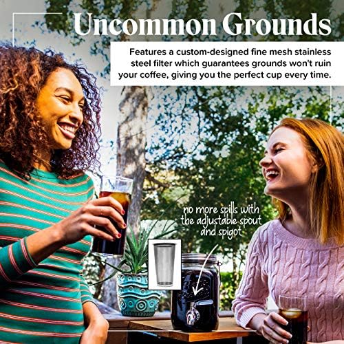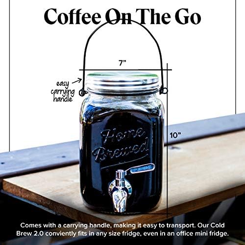 Willow & Everett Cafetière à froid – Machine à thé et café glacés de 2 L – Pichet en verre avec bec verseur en acier inoxydable et filtre amovible