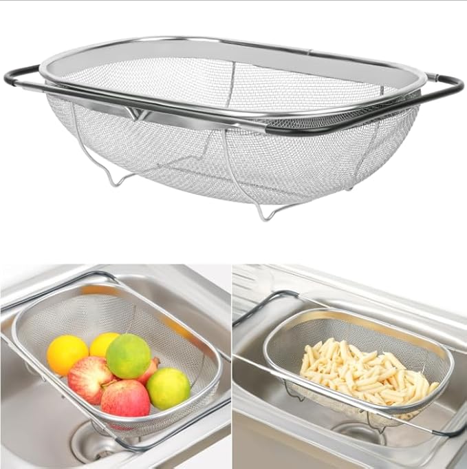 Soyez le premier à laisser votre avis sur “Winter Shore Passoire Inox pour Evier – Passoire Cuisine à Mailles Fines pour Laver, Égoutter, Rincer les Fruits & Légumes – Poignées en Métal Extensibles & Grips de Sécurité en Silicone – Panier 9 l”