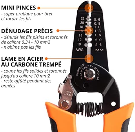 quantité de Wirefy Pince à dénuder et coupe-fil - Outil à dénuder pour fils solides et toronnés 22-10 AWG