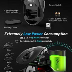 - Transmission super stable et efficace: La transmission sans fil à 2,4 GHz, puissante et stable, vous assure une distance libre pour l’utiliser à moins de 10 mètres. Éliminez les retards, réduisez les interférences et fournissez une excellente souris sans fil pour votre maison et votre bureau.