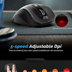 WisFox Souris sans Fil, Souris Optique pour Ordinateur Portable Optique USB 2,4 G USB pour Le Jeu d’économie de Bureau à Domicile avec Nano-récepteur, 800-2400 DPI, 6 Boutons – Noir