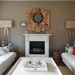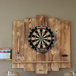 Wooden Dartboard Surround | Protection Murale pour fléchettes Premium & Support pour Tablette | Aspect brûlé ou Design Couleur (Anneau de rattrapage, Cadre pour fléchettes, Panneau arrière)
