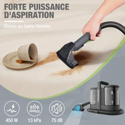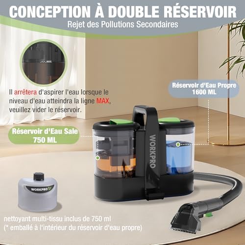Soyez le premier à laisser votre avis sur “WORKPRO Nettoyeur de Tapis 450W, Shampouineuse Canape, Nettoyeur Moquettes avec Double Réservoirs 1,6L+0,75L, 13kPa, 75dB, 2 Buses pour Voiture, Animaux et Tissus d’Ameublement”