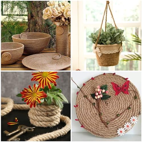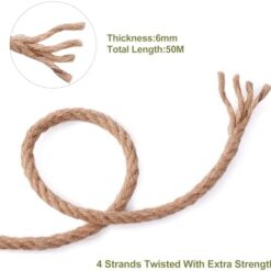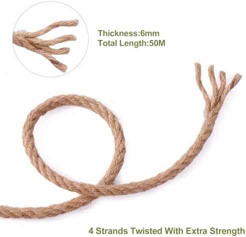 XINSHUNCAN Corde de Jute 6mm,50M 4 Brins Corde de Chanvre Brut Naturel pour l’artisanat, Bricolage Chat Scraper, Jardinage, Cerclage et décoration de la Maison
