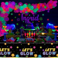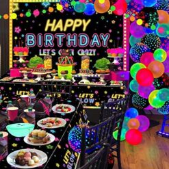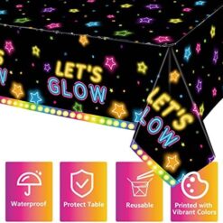 XJLANTTE Lot de 4 nappes de fête Brillantes – Nappes de Table d’anniversaire en Plastique néon Brillant Noire pour décorations de fête d’anniversaire phosphorescentes, 51″x86.6″
