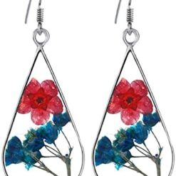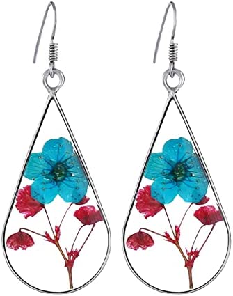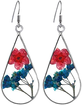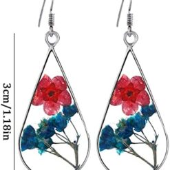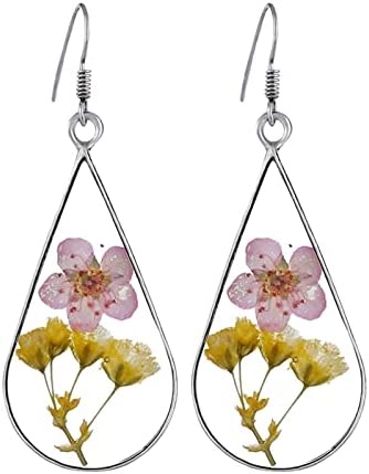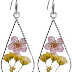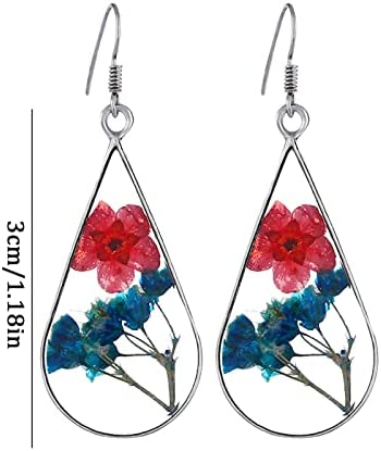 Xmiral d’oreilles en Fleurs séchées en résine de Colle à la Main d’oreilles en Fleurs séchées Goutte d’eau Double Face Douyin Piercings Trousse Bijoux