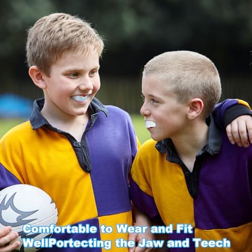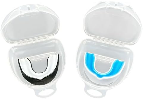 XNIVUIS 2 Pièces Protege Dents boxe Confortable, Protège-dents pour enfants, Protège-Dents Sport avec Boîte Portable, le rugby, le football, le hockey, protege Gencives (Noir Blanc, Blanc Bleu)