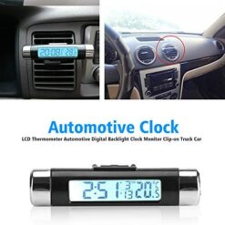 Yosoo Thermomètre d’horloge de Voiture 2 en 1 Rétro-éclairage LCD Numérique Thermomètre Moniteur d’horloge Automatique à Clipser(White)