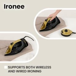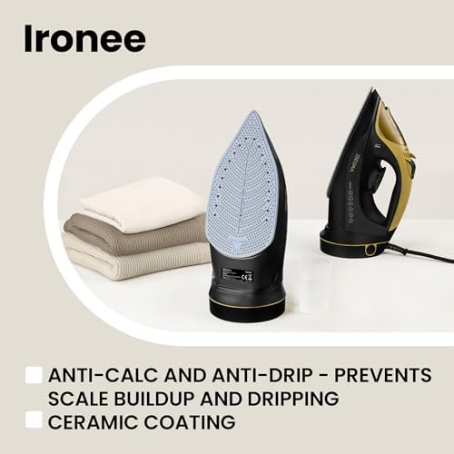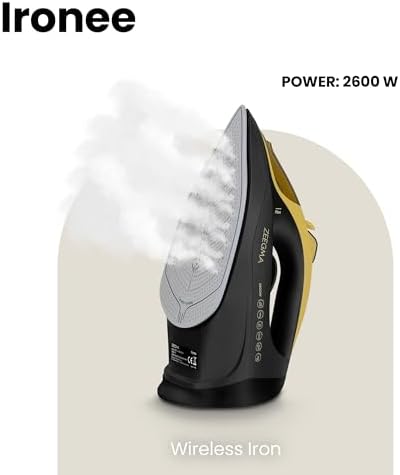 ZEEGMA IRONEE Fer à vapeur sans fil avec semelle en céramique 2600 W, pour repassage vapeur horizontal et vertical, récipient de 320 ml, fonction autonettoyante, anti-goutte et anticalcaire (Black)