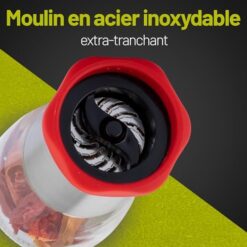 ZOLMER® Moulin à piment en acier inoxydable et en verre | Coupe-épices avec mécanisme de coupe en acier inoxydable – Coupe-piment pour épices grossières et piments – Moulin à épices – Avec couvercle