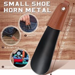 ZOMAKE Chausse Pied en Acier Inoxydable – Petit Chausse-pieds Métal 17cm Avec Étui en Cuir Facile à Utiliser,Parfait Pour Les Voyages(Noir)